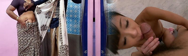 Extremely bosomy first-timer Indian mature wifey blows her hubby's prick
