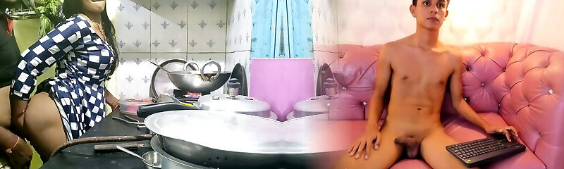 Indian bhabhi cooking in kitchen and smashing brother-in-law